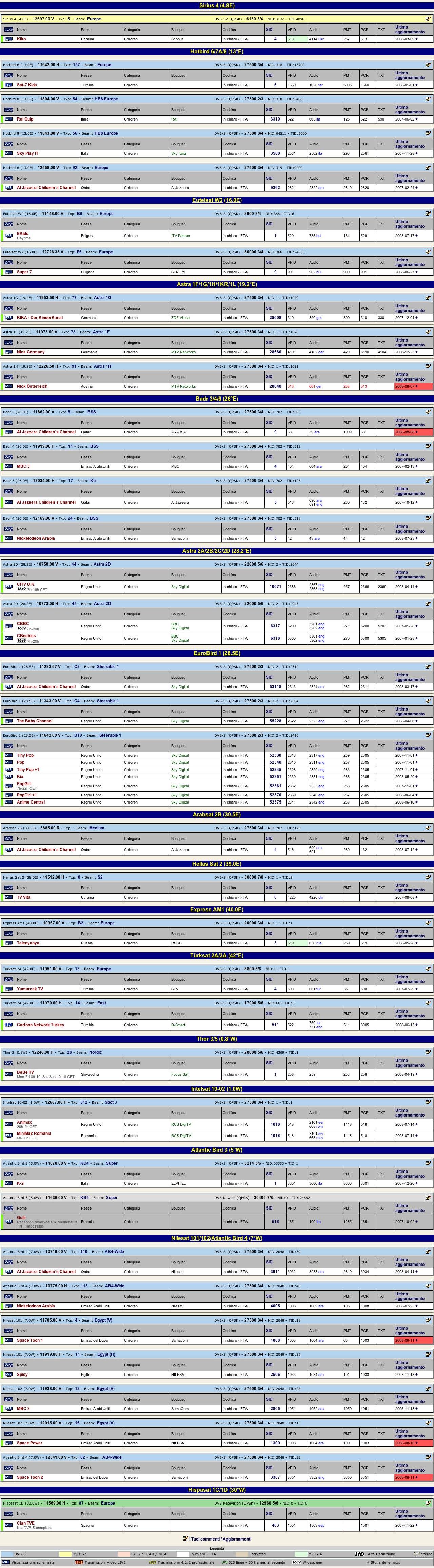 Il buon kingofsat utilizzato con i filtri giusti per la ricerca, conduce spesso a risultati molto soddisfacenti: