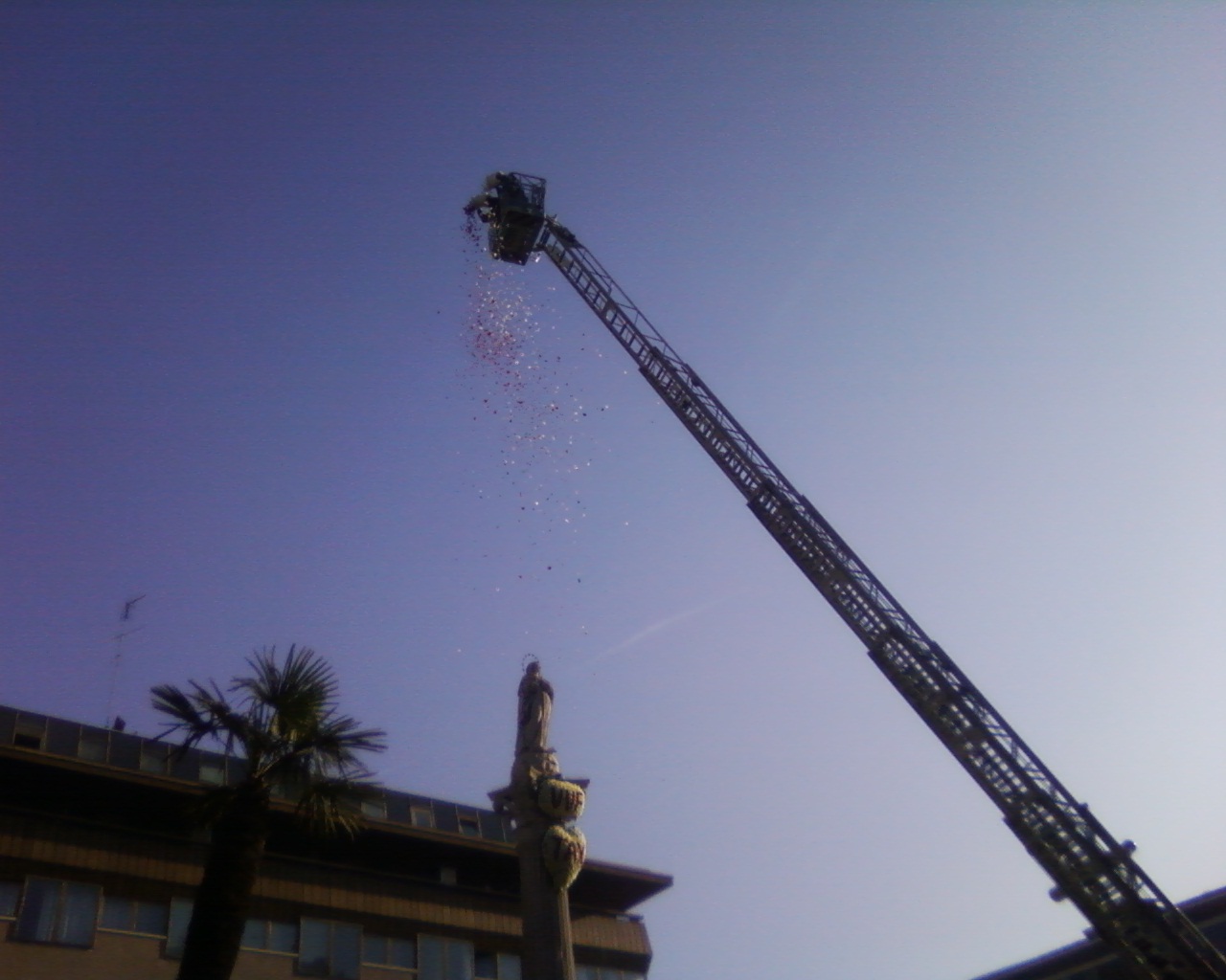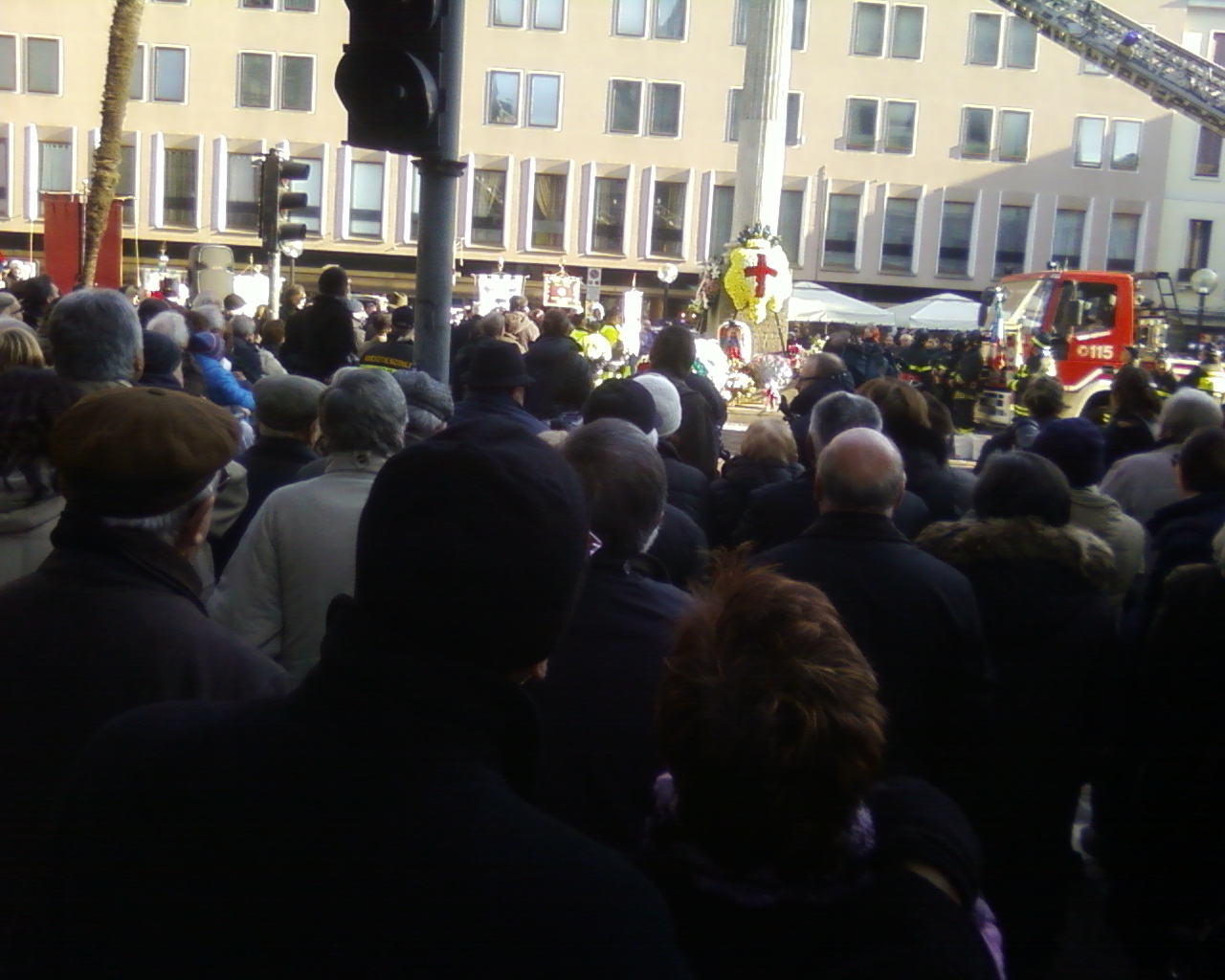 Elly coraggio, non credo che questo sia il momento migliore per cadere preda della depressione. Fatto forza per te e principalmente per tua figlia e la piccolina, che dovrebbe essere la fonte della tua ritrovata giovinezza e voglia di vivere. Ieri bellissima giornata di sole anche se piuttosto fredda. A Padova per l'Immacolata, detta Madonna dei noli (Madonna dei noleggiatori/trasportatori), è tradizione deporre corone di fiori sulla statua della Madonna da parte dei Vigili del fuoco, degli autisti degli autobus e dei tassisti. Vi allego alcune foto della cerimonia. Poi abbiamo fatto una normale passeggiata in centro ma che a me è sembrata lunghissima. Al pomeriggio divano e cura tv perchè non riuscivo a stare in piedi ......