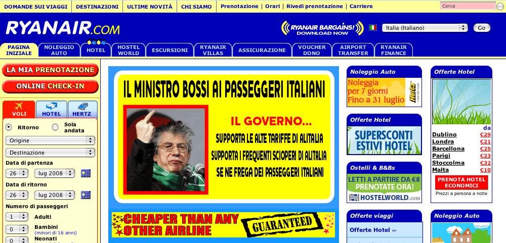 predefinito Umberto Bossi usato come testimonial per uno spot Ryanair